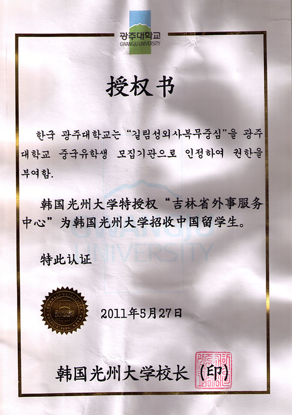韩国海外院校授权书