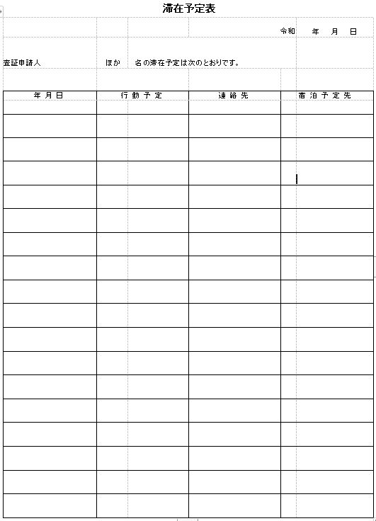 探亲、访友、商务、日本商工会成员——滞在预定表
