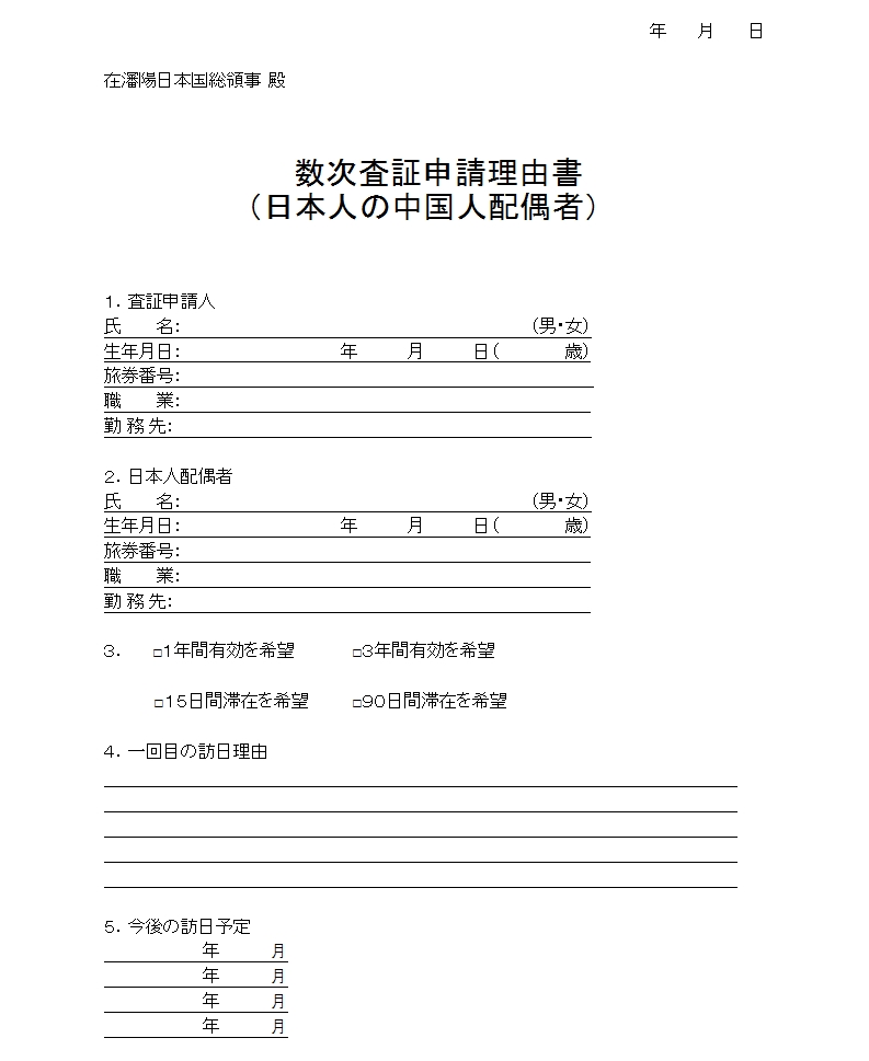 探亲、访友、商务、日本商工会成员——滞在预定表