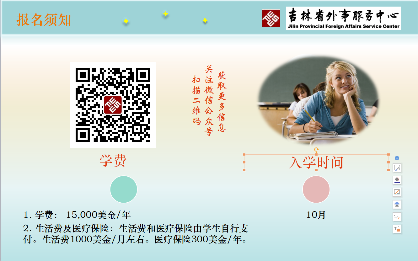 15个奖学金名额,其中包括8个全奖,7个半奖。