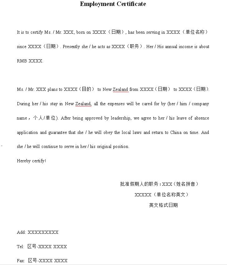 附件:英文在职证明模板