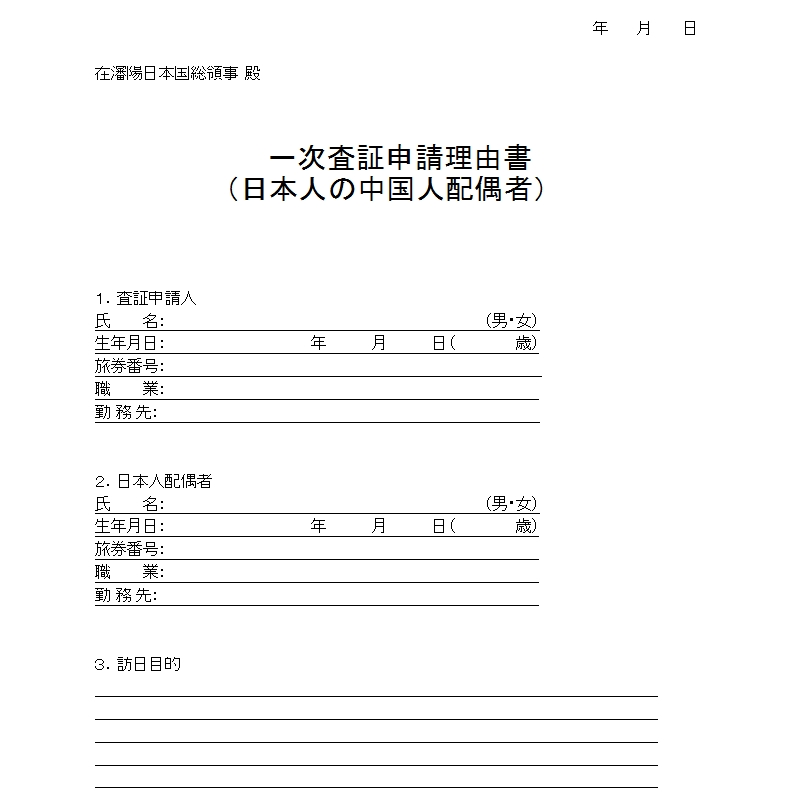 日本——同伴一次签证申请书