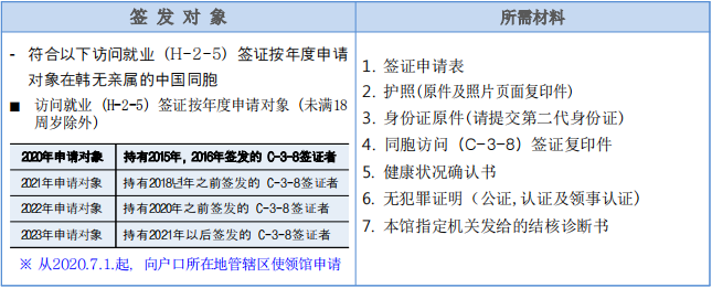 ④在韩国办理过外国人登录的签证到期出境后再入境的(H-2-7)
